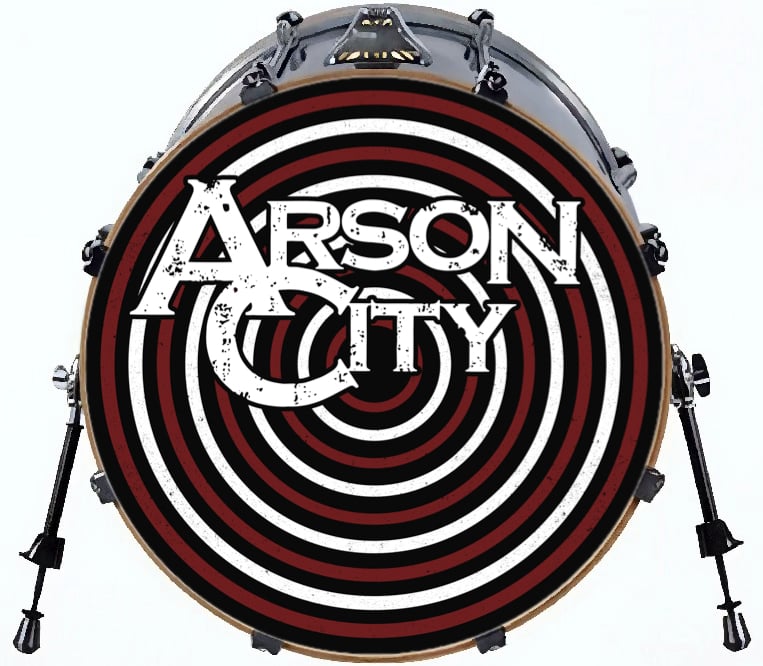 An autographed 22" custom kick drum head featuring custom artwork used for the album "The Horror Show" which is widely considered Arson City's most popular release..
